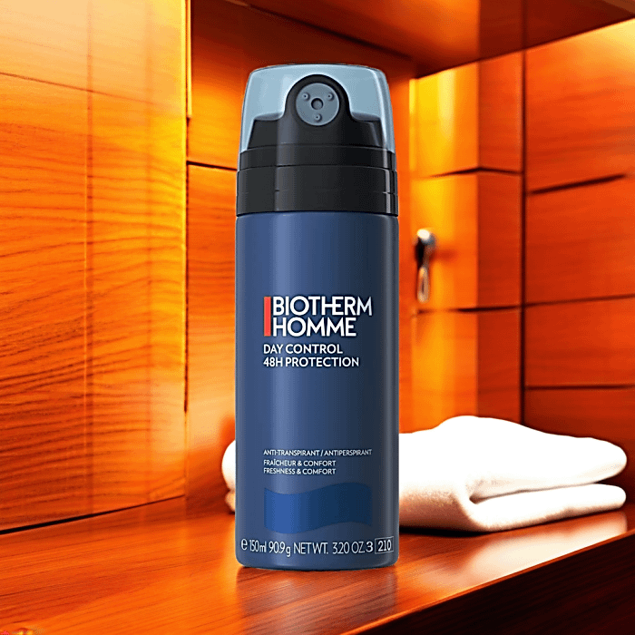 Wat er ook op je programma staat- zorgen over zweetvlekken op je kleding kun je achterwege laten. De antitranspirant Biotherm Homme 48h Day Control Spray voorkomt de faux pas van natte plekken onder je oksels. Dankzij de antitranspiratiestoffen wordt de vorming van zweet actief tegengegaan- zodat je huid droog blijft. Het product voorkomt langdurig lichaamsgeurtjes en vochtige oksels- zodat je de hele dag door kunt genieten van een gevoel van frisheid en zuiverheid.