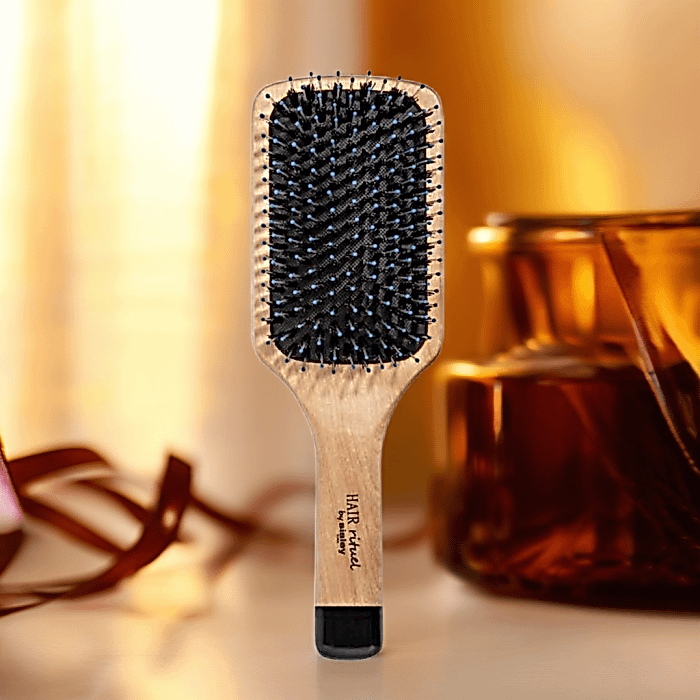 Borstel tot slot vanaf het voorhoofd naar de nek.